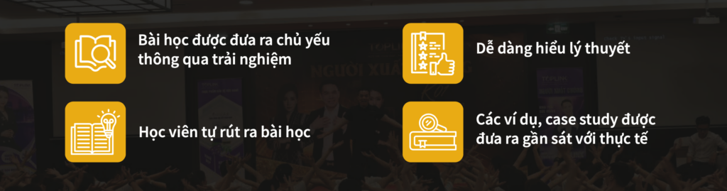 Mọi kiến thức đều được gói gọn trong các TRẢI NGHIỆM GIA TỐC xuyên suốt khóa học 2 ngày!